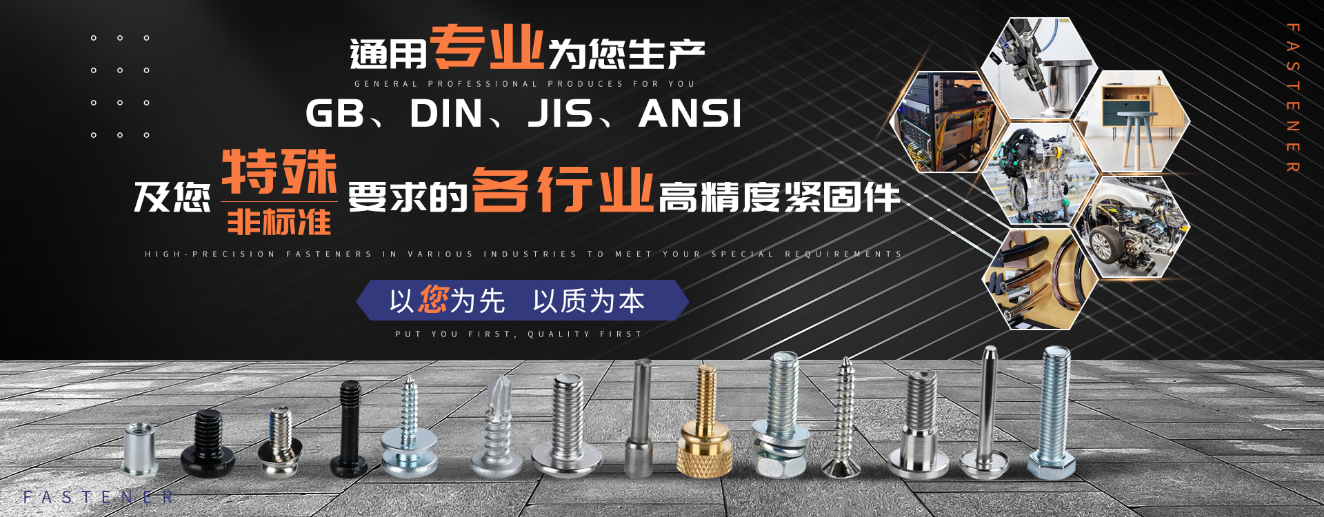 中山市通用螺絲制造有限公司成立于1987年,工廠坐落于廣東四小虎之一的中山市,北連廣州,毗鄰港澳??傉嫉孛娣e14000m 2,足有兩個足球場。1998年通過德國萊茵TUV ISO9002認證,于2002年通過TUV ISO9001:2000認證。2008年通過ISO 14000認證。我司主營自攻螺絲、組合螺絲、機械螺絲、防松螺絲等標準和非標準件既可按客戶的要求提交所需的產品,也可為客戶量身定做所需產品。我司擁有專業的產品檢測隊伍和投影分析儀、金相、硬度計(韋氏和洛氏)、扭矩力測試計等完善的檢測設備,為電子、電器、五金塑料、衛浴、家具、機械、汽配等行業提供符合歐盟質量、環保要求的產品2006年,我司自主開發的ERP管理系統,使我們的生產和服務效率得到了極大的提高 經過三十多年地摸爬滾打,依靠眾多新老顧客的支持,通用螺絲逐漸成長為國內知名的緊固件供應商。了解更多 >>